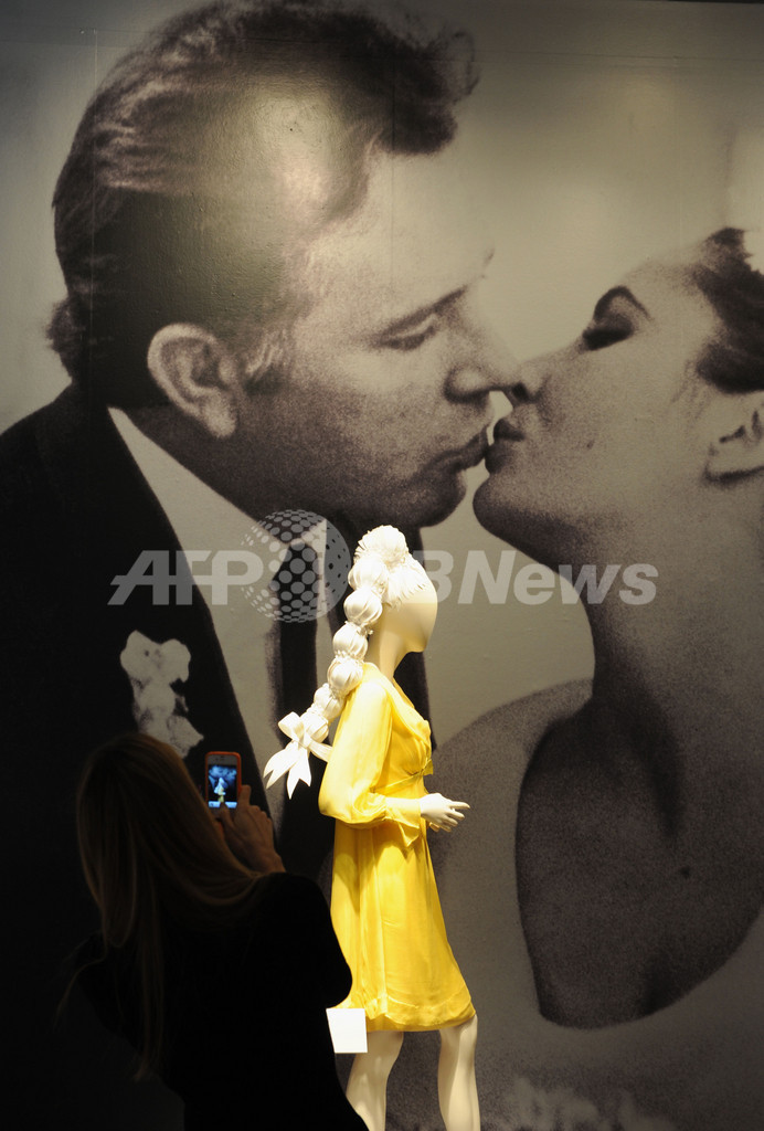 ドレスではシャネル(Chanel)、クリスチャン ディオール(Christian Dior)、ジバンシイ(Givenchy)、ヴァレンティノ(Valentino)、ヴェルサーチ(Versace)、イヴ・サンローラン(Yves Saint Laurent)などのオートクチュールドレスが出品される。テイラーがバートン氏との最初の結婚式で着用したドレスは4~6万ドル(約310~470万円)の値を付けるとみられている。(c)AFP/Brigitte Dusseau