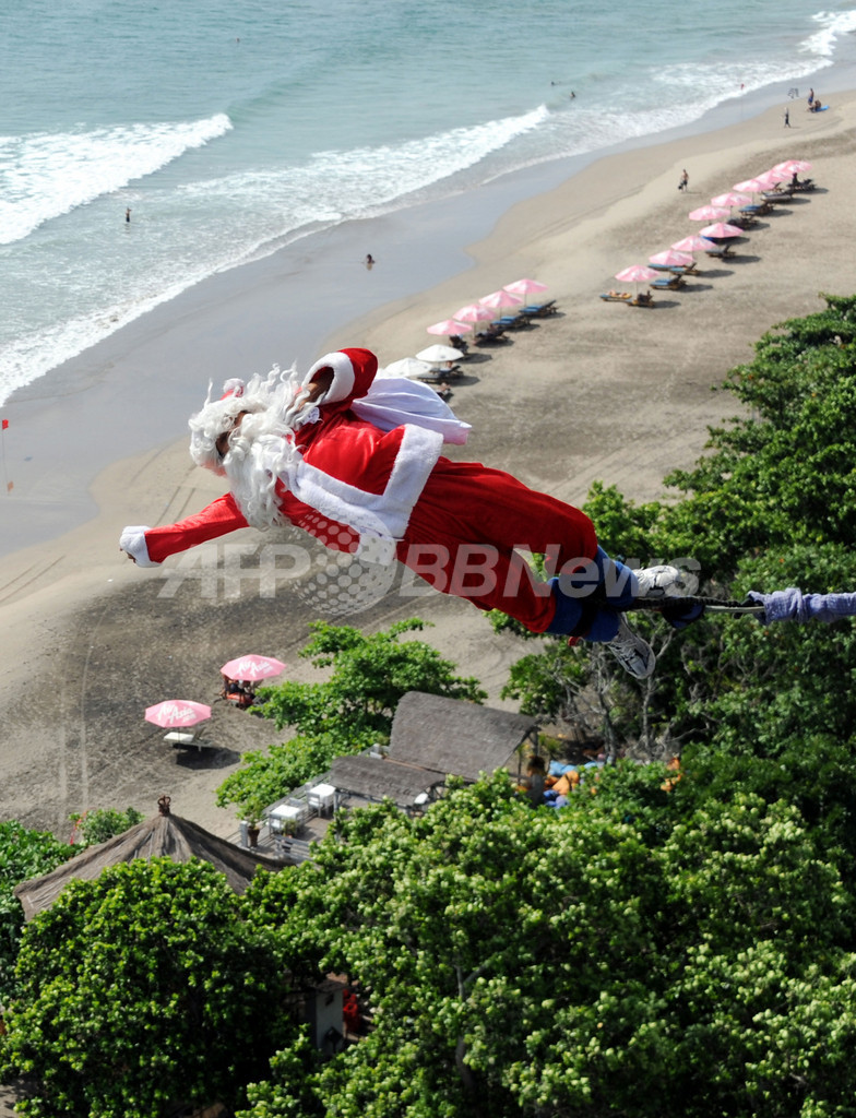 ニュース ライフ サンタがバンジージャンプ! バリ島 2011年12月4日 16:56 発信地:デンパサール/インドネシア [ アジア・オセアニア インドネシア ] このニュースをシェア ‹ › ❮ 3/8 ❯ インドネシア・バリ(Bali)島、デンパサール(Denpasar)のクタ(Kuta)ビーチで2日、サンタクロース姿に扮してのバンジージャンプが行われた。写真は飛び降りるサンタ(2011年12月2日撮影)。(c)AFP/SONNY TUMBELAKA 画像作成中 ! 【12月4日 AFP】インドネシア・バリ(Bali)島、デンパサール(Denpasar)のクタ(Kuta)ビーチで2日、サンタクロース姿に扮してのバンジージャンプが行われた。(c)AFP ライフ 一覧へ> メディア・報道関係・法人の方向け 写真・動画 購入のお問合せ>