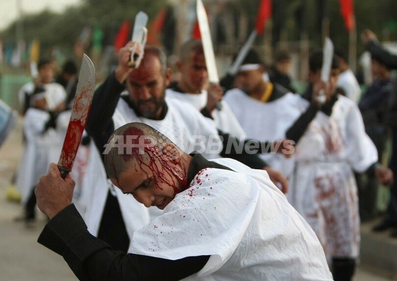 ニュース ライフ シーア派の宗教行事「アシュラ」、バグダッド 2011年12月6日 15:47 発信地:バグダッド/イラク [ 中東・北アフリカ イラク ] このニュースをシェア ‹ › ❮ 8/8 ❯ イラクの首都バグダッド(Baghdad)で5日、イスラム教シーア派(Shiite)の宗教行事、アシュラ(Ashura)が行われた。アシュラは、信者が自らの体を叩いたり、鎖や刃物で自分の体をむち打つなどして、7世紀にカルバラの戦い(Battle of Karbala)で殉教した、イスラム教の預言者ムハンマド(Mohammed)の孫にあたるイマーム・フセイン(Imam Hussein)師を悼む行事。写真は額を傷つける男性たち(2011年12月5日撮影)。(c)AFP/AHMAD AL-RUBAYE 画像作成中 ! 【12月6日 AFP】イラクの首都バグダッド(Baghdad)で5日、イスラム教シーア派(Shiite)の宗教行事、アシュラ(Ashura)が行われた。(c)AFP ライフ 一覧へ> メディア・報道関係・法人の方向け 写真・動画 購入のお問合せ>
