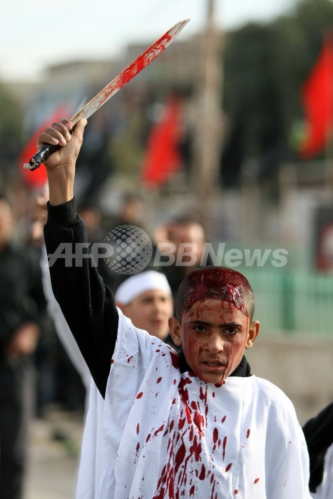 ニュース ライフ シーア派の宗教行事「アシュラ」、バグダッド 2011年12月6日 15:47 発信地:バグダッド/イラク [ 中東・北アフリカ イラク ] このニュースをシェア ‹ › ❮ 7/8 ❯ イラクの首都バグダッド(Baghdad)で5日、イスラム教シーア派(Shiite)の宗教行事、アシュラ(Ashura)が行われた。アシュラは、信者が自らの体を叩いたり、鎖や刃物で自分の体をむち打つなどして、7世紀にカルバラの戦い(Battle of Karbala)で殉教した、イスラム教の預言者ムハンマド(Mohammed)の孫にあたるイマーム・フセイン(Imam Hussein)師を悼む行事。写真は額を傷つける少年(2011年12月5日撮影)。(c)AFP/AHMAD AL-RUBAYE 画像作成中 ! 【12月6日 AFP】イラクの首都バグダッド(Baghdad)で5日、イスラム教シーア派(Shiite)の宗教行事、アシュラ(Ashura)が行われた。(c)AFP ライフ 一覧へ> メディア・報道関係・法人の方向け 写真・動画 購入のお問合せ>