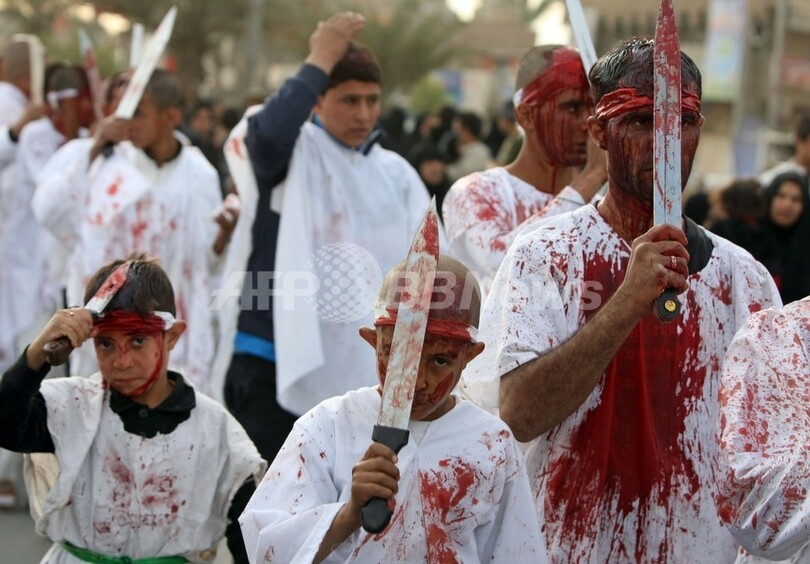 ニュース ライフ シーア派の宗教行事「アシュラ」、バグダッド 2011年12月6日 15:47 発信地:バグダッド/イラク [ 中東・北アフリカ イラク ] このニュースをシェア ‹ › ❮ 6/8 ❯ イラクの首都バグダッド(Baghdad)で5日、イスラム教シーア派(Shiite)の宗教行事、アシュラ(Ashura)が行われた。アシュラは、信者が自らの体を叩いたり、鎖や刃物で自分の体をむち打つなどして、7世紀にカルバラの戦い(Battle of Karbala)で殉教した、イスラム教の預言者ムハンマド(Mohammed)の孫にあたるイマーム・フセイン(Imam Hussein)師を悼む行事。写真は額を傷つける人びと(2011年12月5日撮影)。(c)AFP/AHMAD AL-RUBAYE 画像作成中 ! 【12月6日 AFP】イラクの首都バグダッド(Baghdad)で5日、イスラム教シーア派(Shiite)の宗教行事、アシュラ(Ashura)が行われた。(c)AFP ライフ 一覧へ> メディア・報道関係・法人の方向け 写真・動画 購入のお問合せ>