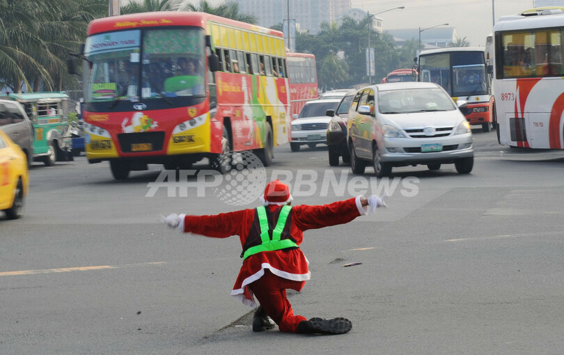 「踊る交通警官」がサンタに、フィリピン