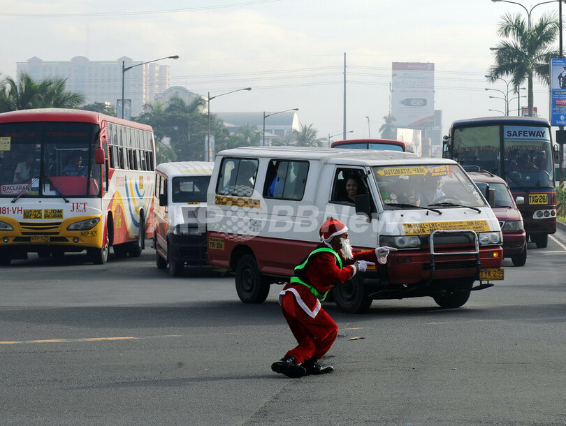 「踊る交通警官」がサンタに、フィリピン