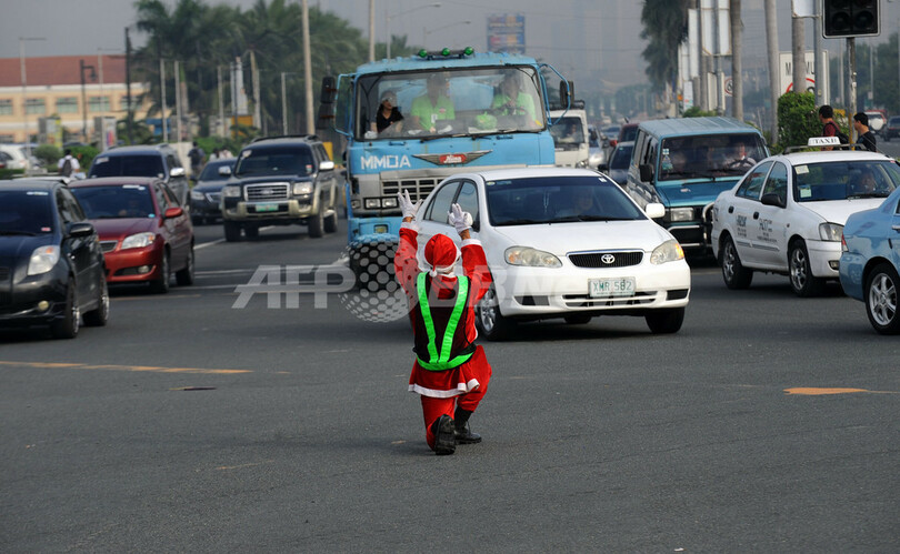 「踊る交通警官」がサンタに、フィリピン