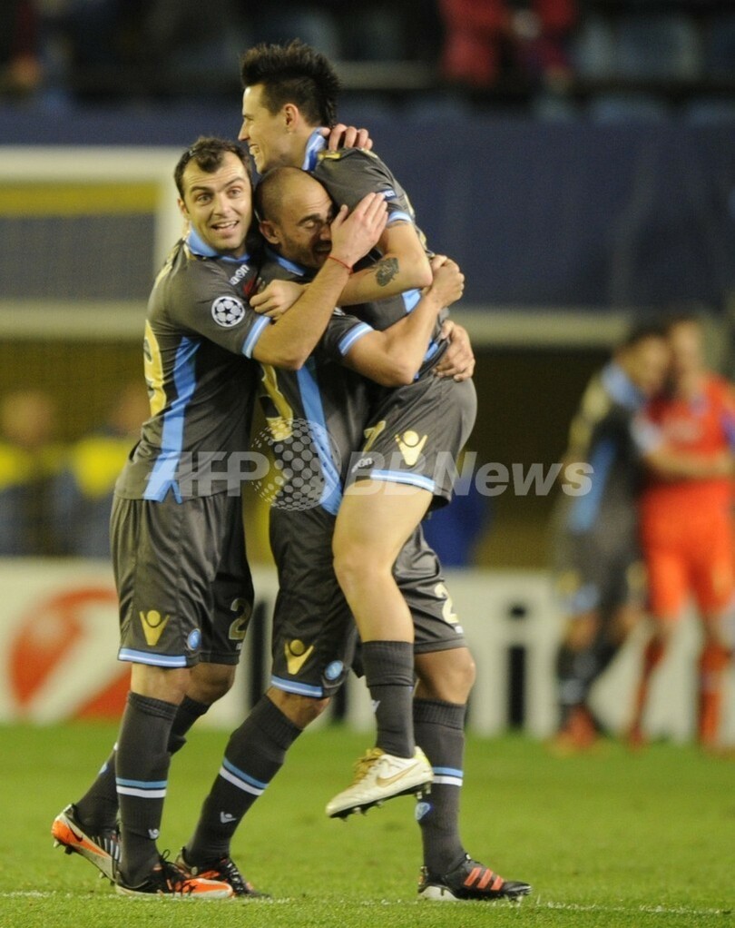 試合に勝利し歓喜するナポリの選手(2011年12月7日撮影)。(c)AFP/JOSE JORDAN