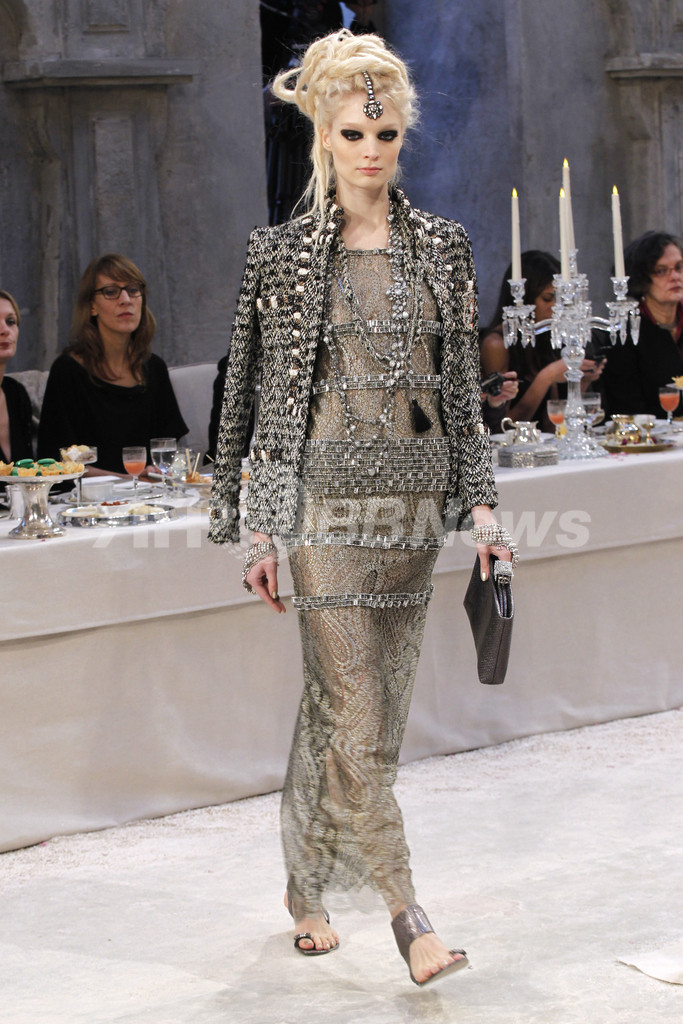 【12月8日 AFP】フランス・パリ(Paris)で6日、カール・ ラガーフェルド(Karl Lagerfeld)が手がける「シャネル(CHANEL)」がメティエダール・コレクション(Metiers d’Art)新作「パリ-ボンベイ(Paris-Bombay)」を発表した。