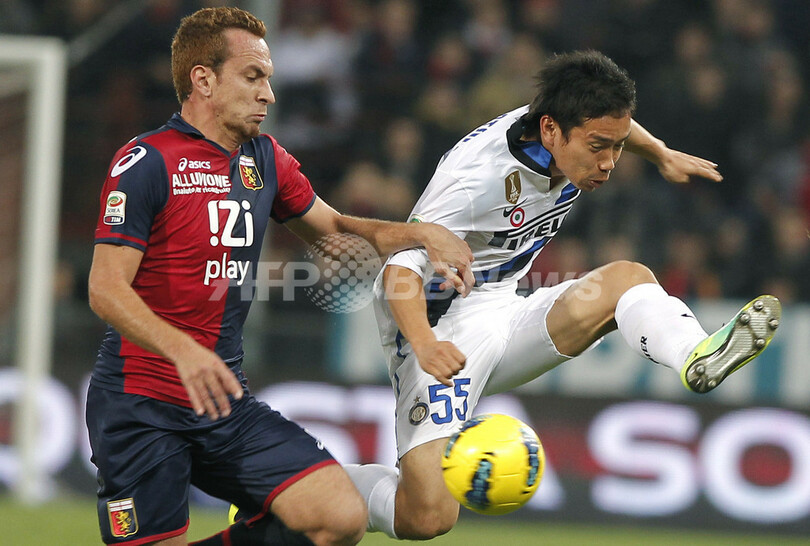 【12月14日 AFP】11-12イタリア・セリエAは13日、第11節の延期分1試合が行われ、インテル(Inter Milan)は長友佑都(Yuto Nagatomo)のゴールでジェノア(Genoa CFC)に1-0で勝利し、7位に順位を上げた。