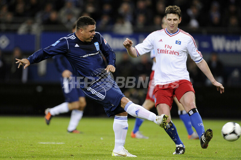 【12月14日 AFP】国連開発計画(United Nations Development Programme、UNDP)による貧困撲滅慈善試合が13日、ドイツ・ハンブルク(Hamburg)のアイエムテック・アレーナ(Imtech Arena)で開催され、UNDPの親善大使を務めるジネディーヌ・ジダン(Zinedine Zidane)氏、ロナウド(Ronaldo)氏ら擁する世界選抜と、ハンブルガーSV(Hamburger SV)のオールスターが対戦した。(c)AFP