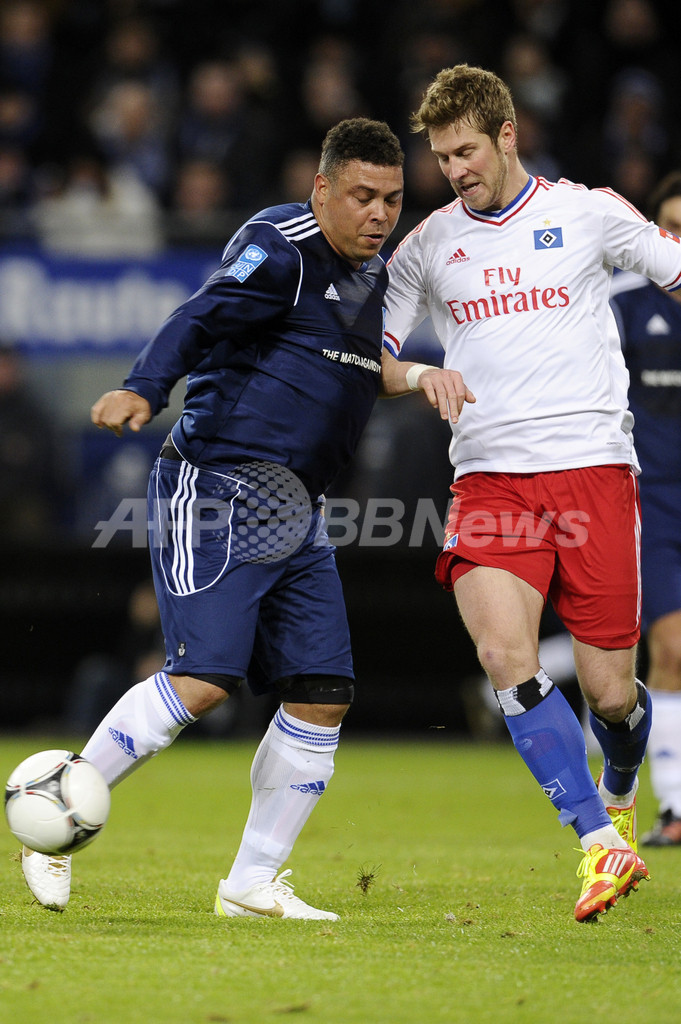 【12月14日 AFP】国連開発計画(United Nations Development Programme、UNDP)による貧困撲滅慈善試合が13日、ドイツ・ハンブルク(Hamburg)のアイエムテック・アレーナ(Imtech Arena)で開催され、UNDPの親善大使を務めるジネディーヌ・ジダン(Zinedine Zidane)氏、ロナウド(Ronaldo)氏ら擁する世界選抜と、ハンブルガーSV(Hamburger SV)のオールスターが対戦した。(c)AFP