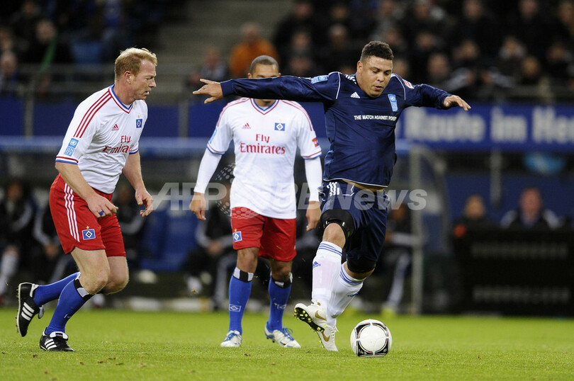 【12月14日 AFP】国連開発計画(United Nations Development Programme、UNDP)による貧困撲滅慈善試合が13日、ドイツ・ハンブルク(Hamburg)のアイエムテック・アレーナ(Imtech Arena)で開催され、UNDPの親善大使を務めるジネディーヌ・ジダン(Zinedine Zidane)氏、ロナウド(Ronaldo)氏ら擁する世界選抜と、ハンブルガーSV(Hamburger SV)のオールスターが対戦した。(c)AFP