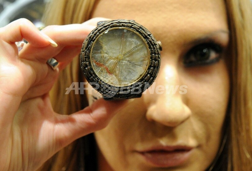 アルパ氏の時計メーカー「ArtyA」は、文字盤に恐竜の糞(ふん)石を用いたり、沈没した豪華客船「タイタニック(Titanic)」号から回収された部品を使ったりしたユニークなオリジナル時計を製作している。本物のクモや蝶の羽根、銃弾が入った時計や、100万ボルトの稲妻に打たれた外装を使った時計などもあり、価格は最高12万ドル(約940万円)。(c)AFP