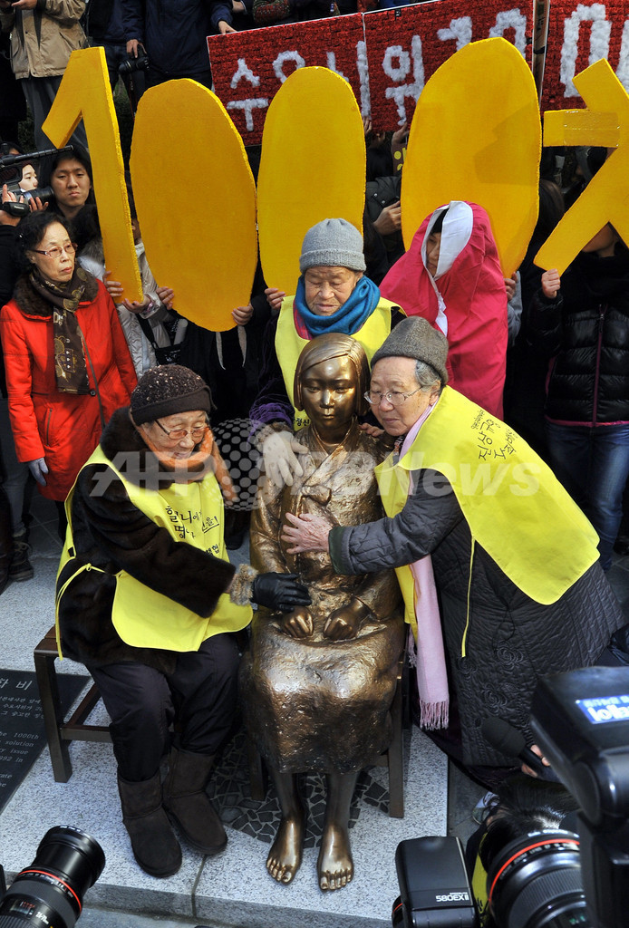 ニュース 政治・経済 ソウルの日本大使館前に慰安婦象徴する少女像、韓国 2011年12月15日 16:43 発信地:ソウル/韓国 [ 韓国・北朝鮮 韓国 ] このニュースをシェア ‹ › ❮ 3/9 ❯ 韓国・ソウル(Seoul)の日本大使館前で14日、旧日本軍の従軍慰安婦だった女性の支援団体が被害女性を象徴する韓国少女の像「平和の碑」を設置した。像は、日本政府の公式謝罪と賠償を求めて1992年から毎週、水曜日に開いてきた集会が1000回を迎えたことを機に設置された。写真は、少女像を抱く元慰安婦の女性たち(2011年12月14日撮影)。(c)AFP/JUNG YEON-JE 画像作成中 ! 【12月15日 AFP】韓国・ソウル(Seoul)の日本大使館前で14日、旧日本軍の従軍慰安婦だった女性の支援団体が被害女性を象徴する韓国少女の像「平和の碑」を設置した。像は、日本政府の公式謝罪と賠償を求めて1992年から毎週、水曜日に開いてきた集会が1000回を迎えたことを機に設置された。(c)AFP 政治・経済 一覧へ> メディア・報道関係・法人の方向け 写真・動画 購入のお問合せ>
