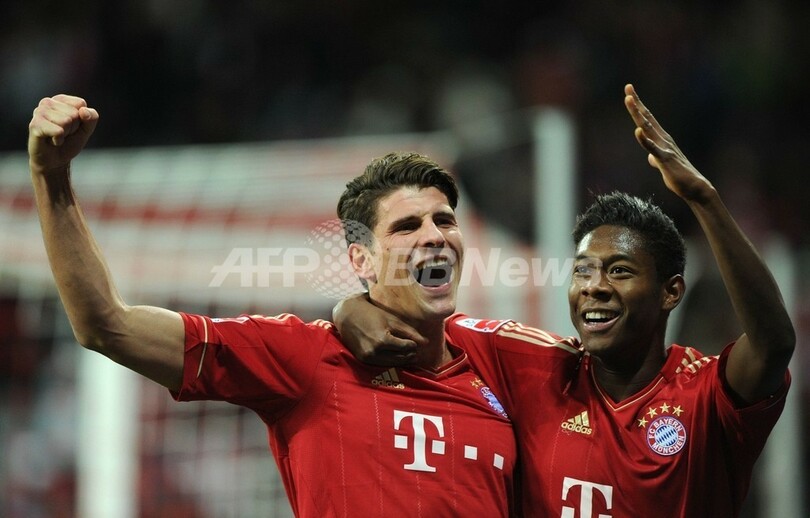 後半3分にマリオ・ゴメス(Mario Gomez)のリーグ戦16試合で16得点目となるゴールで先制したバイエルンは、同18分には途中交代で出場したデヴィッド・アラバ(David Alaba)が追加点を挙げると、終盤にはトニ・クロース(Toni Kroos)の得点でとどめを刺した。(c)AFP