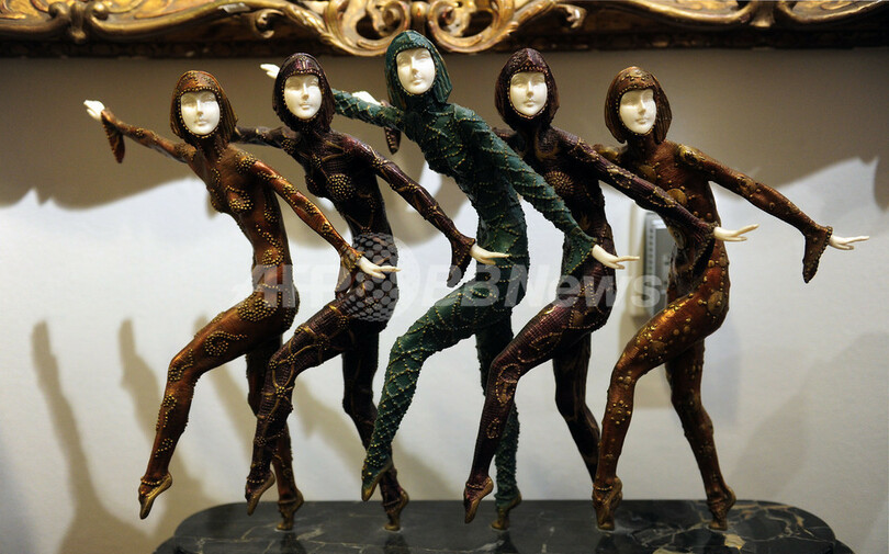 写真は、12日に公開されたルーマニアの彫刻家D.H. Chiparusがサインを入れた作品「5人のダンサー」(2011年12月12日撮影)。(c)AFP/Frederic J. BROWN