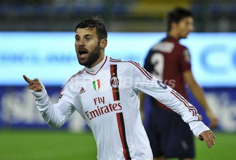 チームの得点に歓喜するミランのアントニオ・ノチェリーノ(Antonio Nocerino、2011年12月20日撮影)。(c)AFP/ANDREAS SOLARO