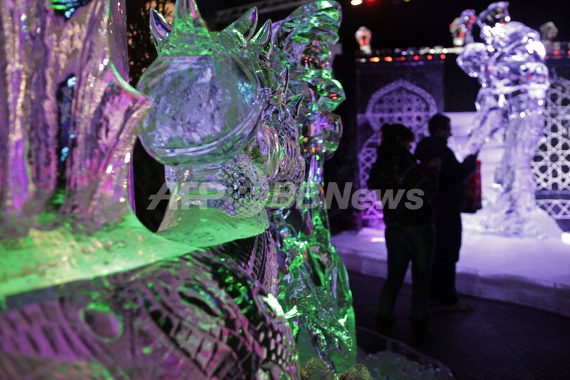 写真は氷像彫刻家の祭典の会場で、氷像を眺める来場者(2011年12月15日撮影)。(c)AFP/ANOEK DE GROOT