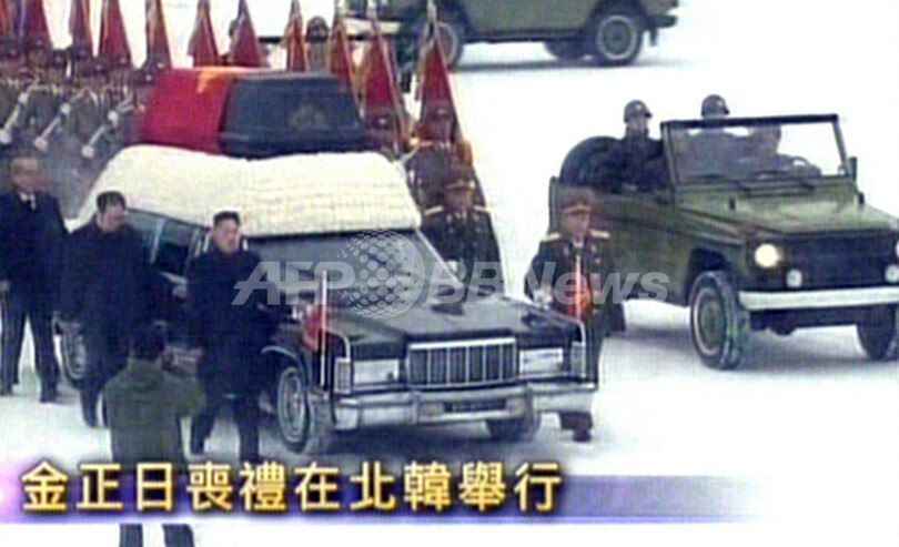 朝鮮中央テレビ(Korean Central Television)など国営メディアは同日午後、後継指導者の三男・金正恩(Kim Jong-Un)氏らに付き添われ、霊きゅう車の屋根に乗せられて、雪に覆われた市内を行進する金正日総書記の棺の様子を中継した。