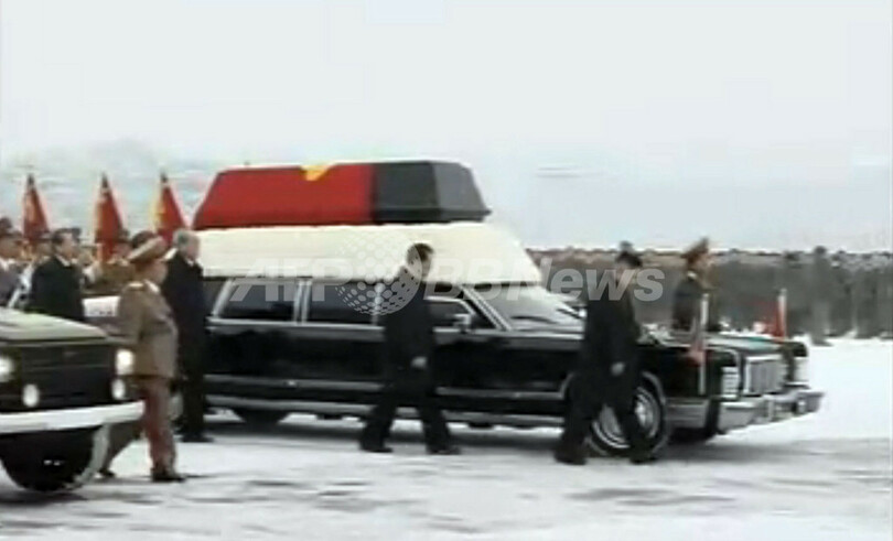 朝鮮中央テレビ(Korean Central Television)など国営メディアは同日午後、後継指導者の三男・金正恩(Kim Jong-Un)氏らに付き添われ、霊きゅう車の屋根に乗せられて、雪に覆われた市内を行進する金正日総書記の棺の様子を中継した。