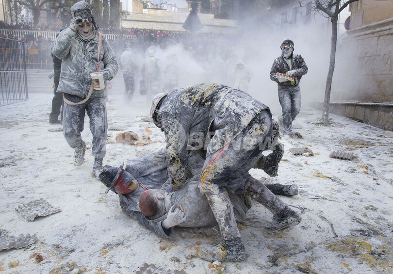 ニュース ライフ こぼれ話 スペインで大暴動・・・ではなく、粉かけ祭りです 2011年12月29日 12:02 発信地:イビ/スペイン [ ヨーロッパ スペイン ] このニュースをシェア ‹ › ❮ 3/9 ❯ スペイン南東部のイビ(Ibi)で28日、200年の歴史を持つ毎年恒例の祭り「Els Enfarinats」が行われ、市民たちが市役所前で小麦粉や卵を盛大に投げ合い、爆竹を鳴らすなどして祝った(2011年12月28日撮影)。(c)AFP/Jaime REINA 画像作成中 ! 【12月29日 AFP】スペイン南東部のイビ(Ibi)で28日、200年の歴史を持つ毎年恒例の祭り「Els Enfarinats」が行われ、市民たちが市役所前で小麦粉や卵を盛大に投げ合い、爆竹を鳴らすなどして祝った。(c)AFP ライフ 一覧へ> メディア・報道関係・法人の方向け 写真・動画 購入のお問合せ>