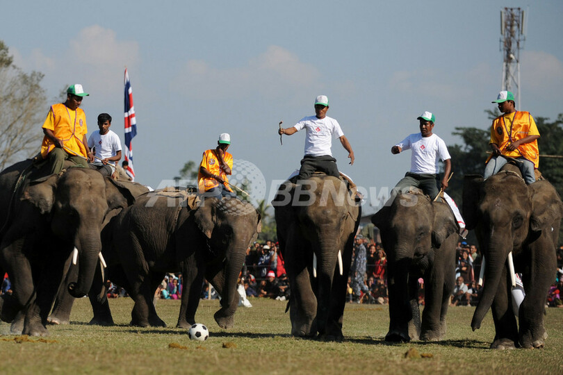 鼻先でゴール決めるぞ!ゾウの祭典でサッカー大会 ネパール