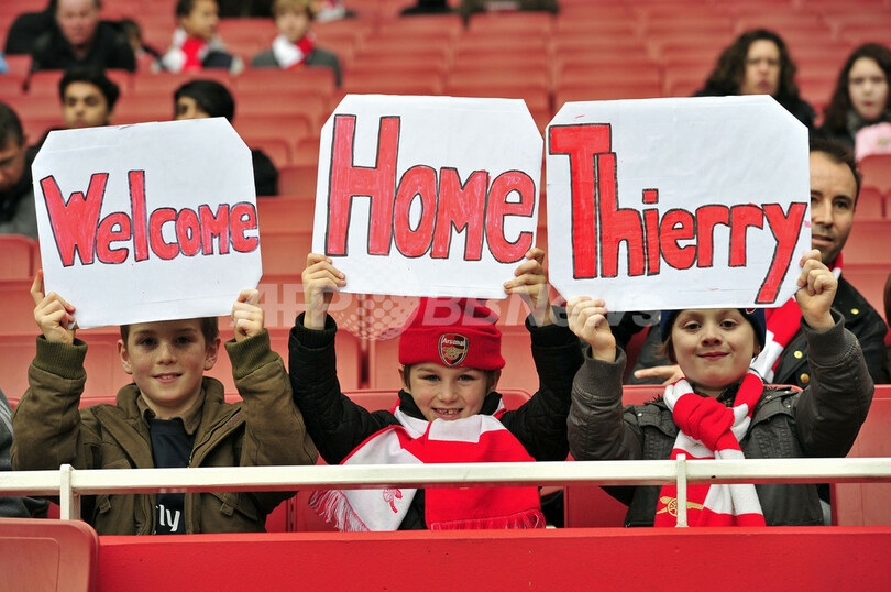 ティエリ・アンリ(Thierry Henry)の加入を歓迎するアーセナルのサポーター(2011年12月31日撮影)。(c)AFP/GLYN KIRK
