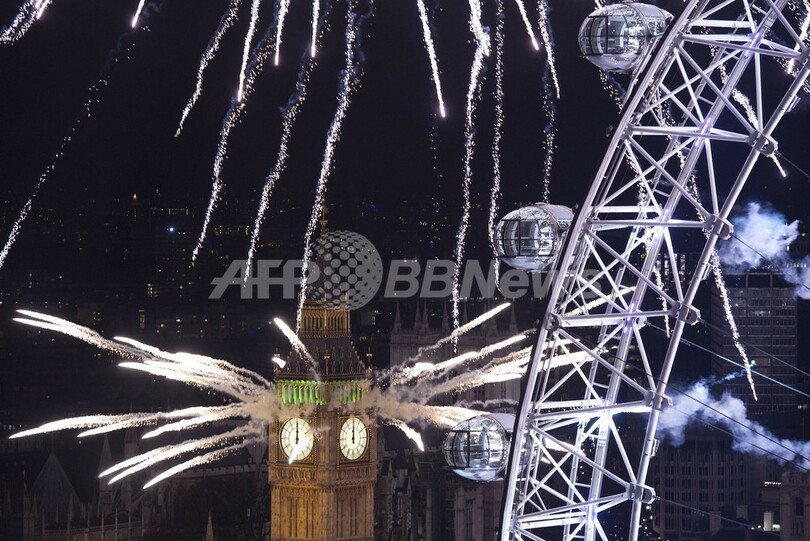 続いて香港(Hong Kong)でも、名所になっている建物から打ち上げられた花火が港を照らし、集まっていた人たちを喜ばせた。ことし五輪が開催される英ロンドン(London)も花火で彩られた。