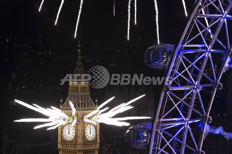 続いて香港(Hong Kong)でも、名所になっている建物から打ち上げられた花火が港を照らし、集まっていた人たちを喜ばせた。ことし五輪が開催される英ロンドン(London)も花火で彩られた。