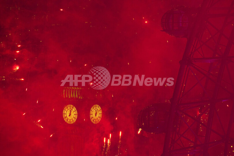 続いて香港(Hong Kong)でも、名所になっている建物から打ち上げられた花火が港を照らし、集まっていた人たちを喜ばせた。ことし五輪が開催される英ロンドン(London)も花火で彩られた。