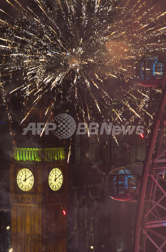 続いて香港(Hong Kong)でも、名所になっている建物から打ち上げられた花火が港を照らし、集まっていた人たちを喜ばせた。ことし五輪が開催される英ロンドン(London)も花火で彩られた。