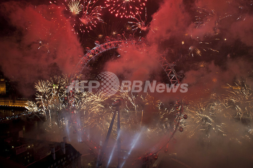 続いて香港(Hong Kong)でも、名所になっている建物から打ち上げられた花火が港を照らし、集まっていた人たちを喜ばせた。ことし五輪が開催される英ロンドン(London)も花火で彩られた。