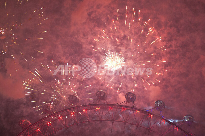 続いて香港(Hong Kong)でも、名所になっている建物から打ち上げられた花火が港を照らし、集まっていた人たちを喜ばせた。ことし五輪が開催される英ロンドン(London)も花火で彩られた。