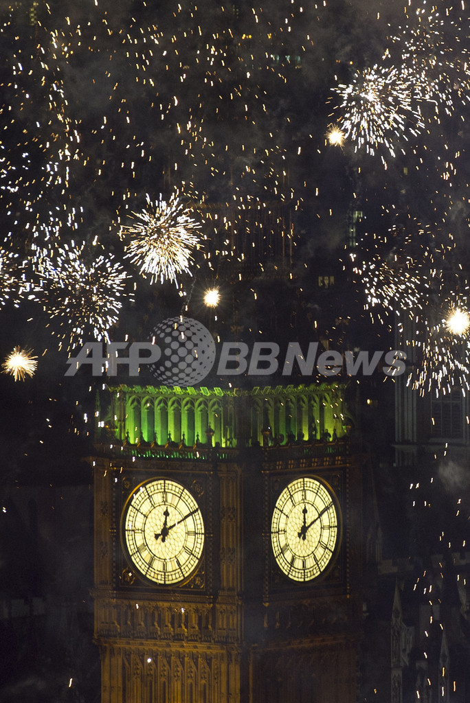 続いて香港(Hong Kong)でも、名所になっている建物から打ち上げられた花火が港を照らし、集まっていた人たちを喜ばせた。ことし五輪が開催される英ロンドン(London)も花火で彩られた。