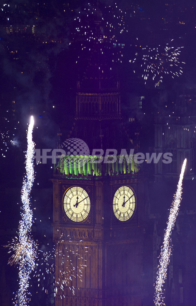 続いて香港(Hong Kong)でも、名所になっている建物から打ち上げられた花火が港を照らし、集まっていた人たちを喜ばせた。ことし五輪が開催される英ロンドン(London)も花火で彩られた。