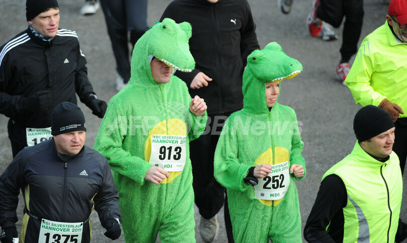 ニュース ライフ こぼれ話 大晦日のマラソン大会、ドイツ 2012年1月1日 13:07 発信地:ハノーバー/ドイツ [ ヨーロッパ ドイツ ] このニュースをシェア ‹ › ❮ 1/5 ❯ ドイツのハノーバー(Hanover)で行われた5.8キロのマラソン大会に出場するランナーたち(2011年12月31日撮影)。(c)AFP/JULIAN STRATENSCHULTE 画像作成中 ! 【1月1日 AFP】ドイツのハノーバー(Hanover)で31日、5.8キロのマラソン大会が行われ、約3000人のランナーが参加した。なかには仮装してレースに臨む人たちの姿もみられた。(c)AFP ライフ 一覧へ> メディア・報道関係・法人の方向け 写真・動画 購入のお問合せ>