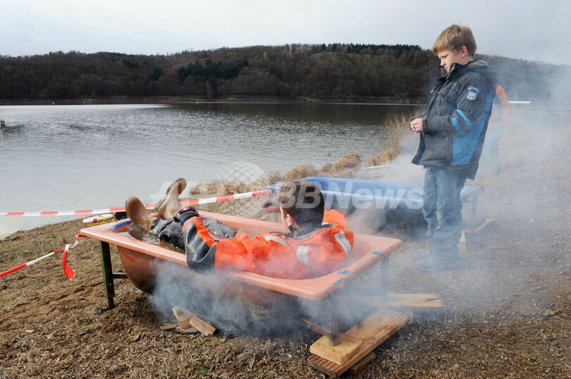 ニュース ライフ こぼれ話 ドイツ各地で新年の寒中水泳大会 2012年1月2日 19:10 発信地:ドイツ [ ヨーロッパ ドイツ ] このニュースをシェア ‹ › ❮ 5/6 ❯ ドイツ中部ヘムフルト(Hemfurth)そばのエーダーゼー(Edersee)湖で開かれた水泳大会で、風呂につかって待機するライフガード(2012年1月1日撮影)。(c)AFP/UWE ZUCCHI 画像作成中 ! 【1月2日 AFP】ドイツ各地で1日、新年の寒中水泳大会が開かれた。 水温5度の中、水泳大会が行われたドイツ中部ヘムフルト(Hemfurth)そばのエーダーゼー(Edersee)湖では、水泳を前にサウナや風呂で暖まる人びとの姿が見られた。 また、ドイツ北部、北海(North Sea)のボルクム(Borkum)島では、水温6度の中、水泳大会に150人が参加した。(c)AFP ライフ 一覧へ> メディア・報道関係・法人の方向け 写真・動画 購入のお問合せ>