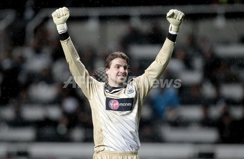 試合に勝利し、歓喜するニューカッスルのGKティム・クルル(Tim Krul、2012年1月4日撮影)。(c)AFP/GRAHAM STUART