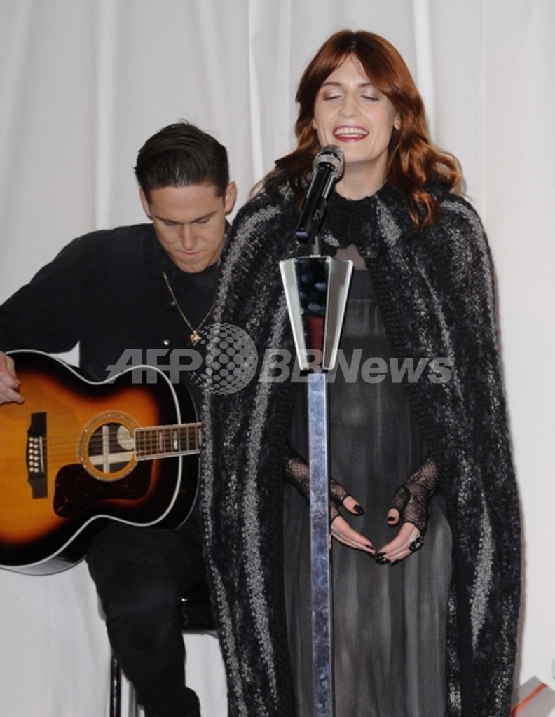 カール・ラガーフェルド(Karl Lagerfeld)のミューズとして知られるボーカルのフローレンス・ウェルチ(Florence Welch)は、この日「シャネル(CHANEL)」11/12年秋冬コレクションのドレスとケープを着用。全身をブラックで統一したシックなコーディネートで登場した。(c)MODE PRESS