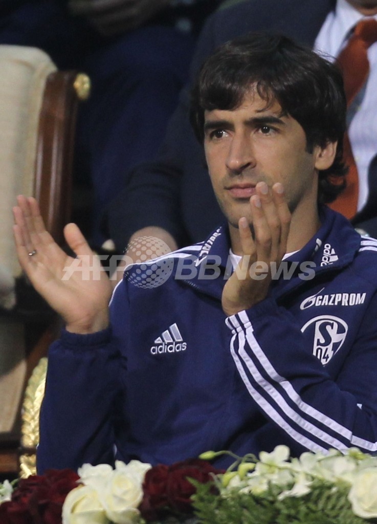試合観戦に訪れたサッカー、ドイツ・ブンデスリーガ1部のシャルケ04(Schalke04)に所属するラウル・ゴンザレス(Raul Gonzalez、2012年1月5日撮影)。(c)AFP/KARIM JAAFAR