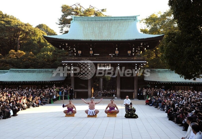 ニュース ライフ 白鵬が明治神宮で奉納土俵入り、新年恒例 2012年1月6日 19:14 発信地:千葉 [ アジア・オセアニア 千葉 ] このニュースをシェア ‹ › ❮ 5/7 ❯ 都内の明治神宮で6日、大相撲の横綱白鵬(Hakuho)が新年恒例の奉納土俵入りを行った。写真は、奉納土俵入りを披露する白鵬(左から2人目)と太刀持ちの安美錦(Aminishiki、左)、露払いの旭天鵬(Kyokutenho、右から2人目)ら(2012年1月6日撮影)。(c)AFP/TOSHIFUMI KITAMURA 画像作成中 ! 【1月6日 AFP】都内の明治神宮で6日、大相撲の横綱白鵬(Hakuho)が新年恒例の奉納土俵入りを行った。(c)AFP ライフ 一覧へ> メディア・報道関係・法人の方向け 写真・動画 購入のお問合せ>
