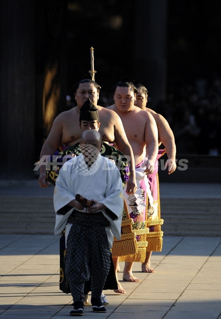 ニュース ライフ 白鵬が明治神宮で奉納土俵入り、新年恒例 2012年1月6日 19:14 発信地:千葉 [ アジア・オセアニア 千葉 ] このニュースをシェア ‹ › ❮ 3/7 ❯ 都内の明治神宮で6日、大相撲の横綱白鵬(Hakuho)が新年恒例の奉納土俵入りを行った。写真は、奉納土俵入りに向かう白鵬と太刀持ちの安美錦(Aminishiki)、露払いの旭天鵬(Kyokutenho)ら(2012年1月6日撮影)。(c)AFP/TOSHIFUMI KITAMURA 画像作成中 ! 【1月6日 AFP】都内の明治神宮で6日、大相撲の横綱白鵬(Hakuho)が新年恒例の奉納土俵入りを行った。(c)AFP ライフ 一覧へ> メディア・報道関係・法人の方向け 写真・動画 購入のお問合せ>