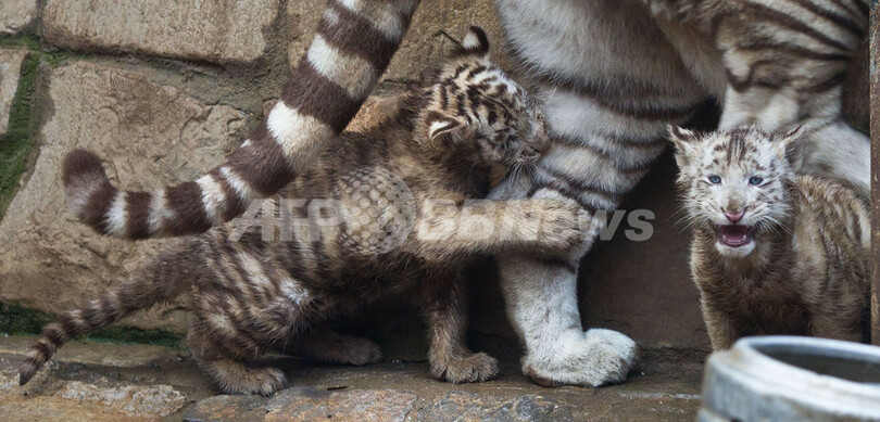 ニュース ライフ こぼれ話 いつも一緒だよ、ホワイトタイガーの子どもたち 独 2012年1月9日 20:28 発信地:アシャースレーベン/ドイツ [ ヨーロッパ ドイツ ] このニュースをシェア ‹ › ❮ 3/3 ❯ ドイツ東部アシャースレーベン(Aschersleben)の動物園で、施設内で母トラと遊ぶホワイトタイガーの子どもたち(2012年1月8日撮影)。(c)AFP/JENS WOLF 画像作成中 ! 【1月9日 AFP】ドイツ東部アシャースレーベン(Aschersleben)の動物園で8日、前年10月28日に生まれたホワイトタイガーの子ども2頭が施設内で遊ぶ姿が見られた。2頭ともまだ名前はなく、現在は1日1時間だけ施設内で公開されている。(c)AFP ライフ 一覧へ> メディア・報道関係・法人の方向け 写真・動画 購入のお問合せ>