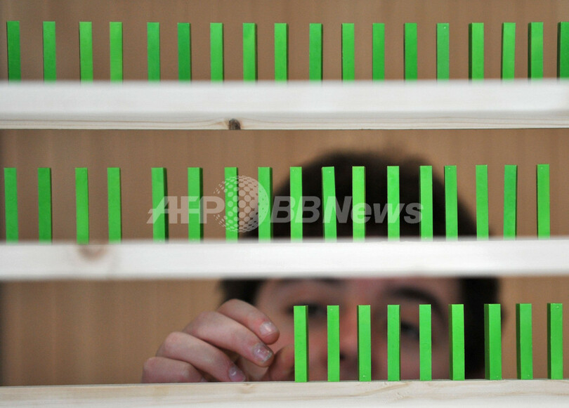 ニュース ライフ ドイツの15歳、カラフルな渦巻きで世界最長ドミノに挑戦 2012年1月10日 16:51 発信地:Kefenrod/ドイツ [ ヨーロッパ ドイツ ] このニュースをシェア ‹ › ❮ 3/3 ❯ ドイツ中部Kefenrodで、慎重にドミノの駒を並べてギネス世界記録(Guiness World Records)に挑戦するパトリック・ジナー(Patrick Sinner)君(2012年1月6日撮影)。(c)AFP/EMILY WABITSCH 画像作成中 ! 【1月10日 AFP】ドイツ中部Kefenrodで6日、15歳の高校生パトリック・ジナー(Patrick Sinner)君ら6人が、カラフルなドミノの駒を並べ、「最長のらせん状のドミノ」のギネス世界記録(Guiness World Records)に挑戦した。(c)AFP ライフ 一覧へ> メディア・報道関係・法人の方向け 写真・動画 購入のお問合せ>