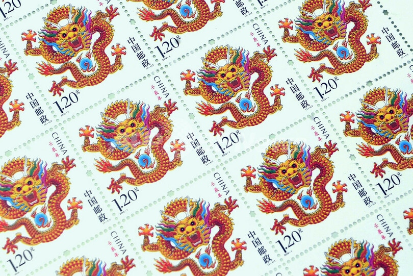 【1月9日 AFP】23日に春節(旧正月、Lunar New Year)を迎える中国の上海(Shanghai)で6日、切手フェアが開催され、辰年にちなんで龍の絵柄をあしらった切手が登場した。