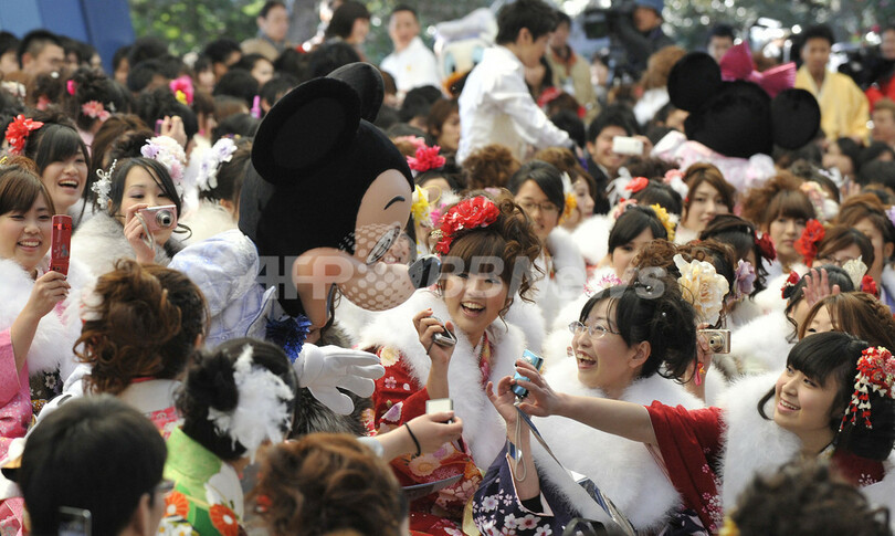 ニュース ライフ ディズニーランドで成人式、ミッキーが祝福 千葉・浦安 2012年1月9日 15:53 発信地:千葉 [ アジア・オセアニア 千葉 ] このニュースをシェア ‹ › ❮ 5/7 ❯ 成人の日の9日、千葉県浦安(Urayasu)市の成人式が東京ディズニーランド(Tokyo Disneyland)で開かれた。政府統計によると、1日現在20歳の新成人の人口は122万人で、最も多かった1970年の246万人の半数を初めて割り込んだ。写真は、ミッキーマウスから祝福されて大喜びの晴れ着姿の新成人たち(2012年1月9日撮影)。(c)AFP/ KAZUHIRO NOGI 画像作成中 ! 【1月9日 AFP】成人の日の9日、千葉県浦安(Urayasu)市の成人式が東京ディズニーランド(Tokyo Disneyland)で開かれた。政府統計によると、1日現在20歳の新成人の人口は122万人で、最も多かった1970年の246万人の半数を初めて割り込んだ。(c)AFP ライフ 一覧へ> メディア・報道関係・法人の方向け 写真・動画 購入のお問合せ>