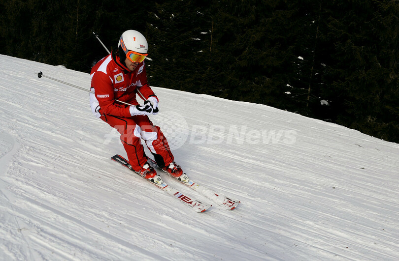 スキーを滑るフェラーリのフェルナンド・アロンソ(Fernando Alonso、2012年1月10日撮影)。(c)AFP/WROOOM2012 PHOTO SERVICE/VINCENZO PINTO