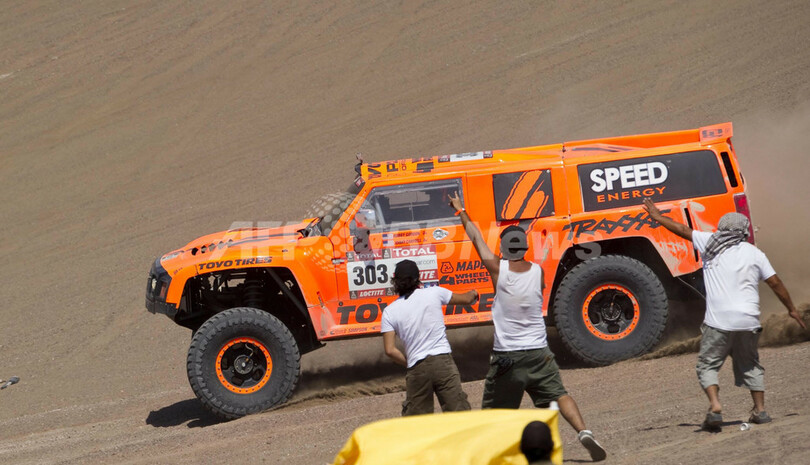 レースに臨むハマー(Hummer)のロビー・ゴードン(Robby Gordon、2012年1月10日撮影)。(c)AFP/MARTIN BERNETTI