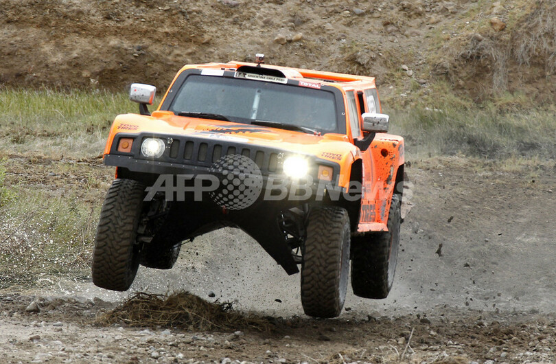 第11ステージに臨むハマー(Hummer)のロビー・ゴードン(Robby Gordon、2012年1月12日撮影)。(c)AFP/POOL/JACKY NAEGELEN