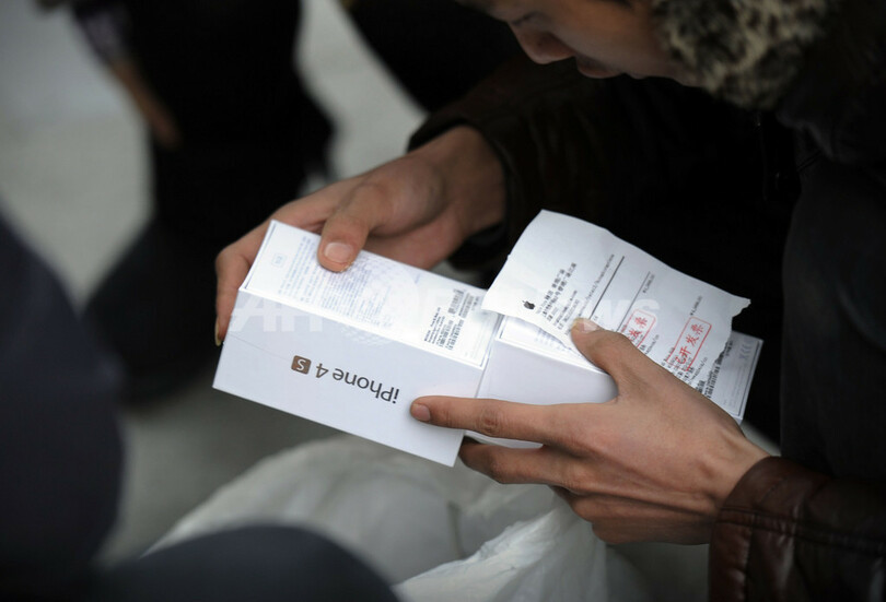 中国では、「iPhone 4S」発売を待ちかねたファンが、発売開始の数日前から店舗前に徹夜で列を作り、話題になっていた。(c)AFP