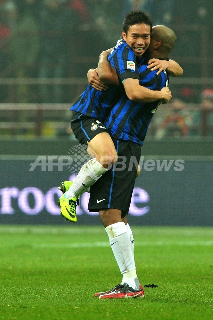 その後、インテルは長友佑都(Yuto Nagatomo)が好機を逃したものの、ACミランのクラレンス・セードルフ(Clarence Seedorf)とロビーニョ(Robinho)のシュートをGKジュリオ・セザール(Julio Cesar)が阻み、逃げ切った。