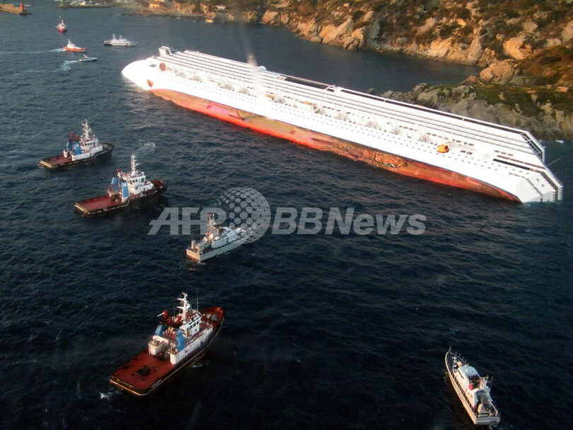 【1月15日 AFP】(写真追加)イタリア中部ジリオ(Giglio)島の沖合で大型クルーズ船「コスタ・コンコルディア(Costa Concordia)号」が座礁した事故で、地元検察当局は14日、同船船長の身柄を拘束した。